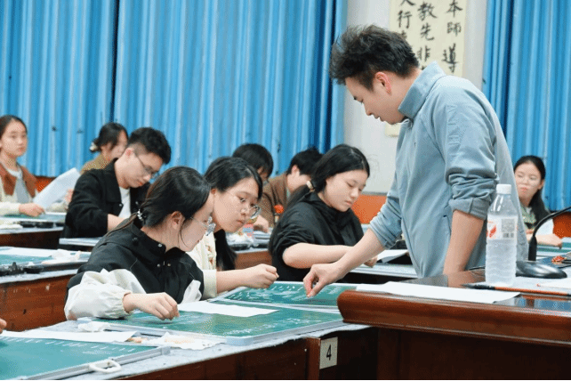 易万喜老师以其幽默的教学风格,将专业的书法知识转化为生动易懂的课堂内容。在授课过程中,他巧妙运用形象比喻,将毛笔字的结构比作人的体态,强调“上下对正”是字形稳健的基础,“笔画变化丰富”是字体神韵的关键。这种深入浅出的教学方式,让学子在轻松愉悦的氛围中快速掌握书写要领。