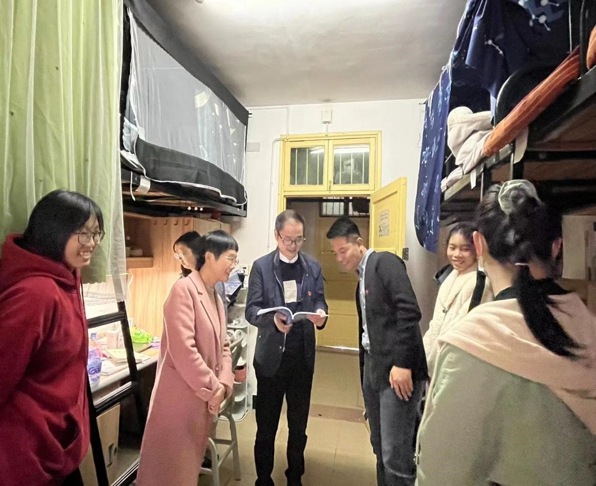 10月28日下午,公司党委书记何培森带领学工办主任唐科、副主任曾志远、辅导员舒莹莹、刘晨晨走访员工宿舍了解员工生活学习状况,深入公寓开展思想引领等工作。