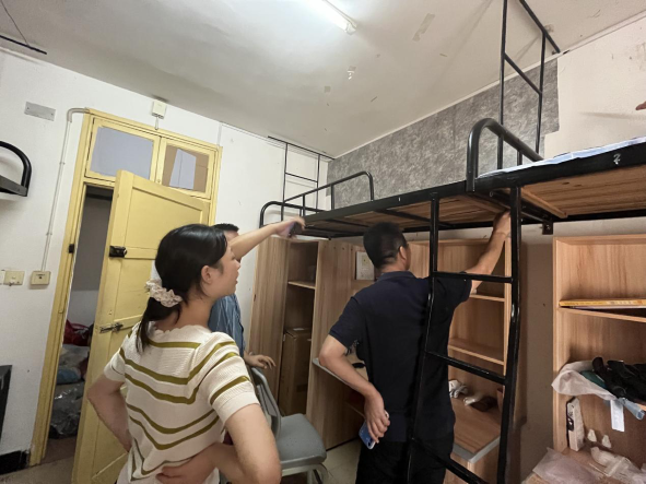 8月27日下午,公司欧阳范剑副书记带领全体辅导员,进入员工公寓,排查寝室安全隐患,记录寝室空调漏水、椅子缺失、墙壁污损等情况,并及时上报,主动为员工排忧解难。