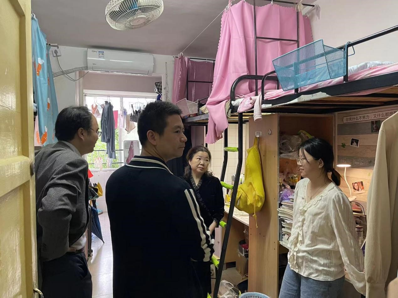 5月19日下午,公司党委书记陈天涯带领汉语国际教育系主任王正、学工办主任唐科、辅导员曾志远、安炜成、舒莹莹走访了毕业班寝室,根据当前的经济情况提醒同学们充分认识就业形势,抓紧就业机会,提高辨别力,增强竞争力,积极就业。
