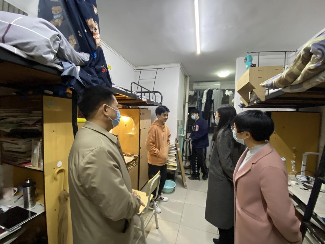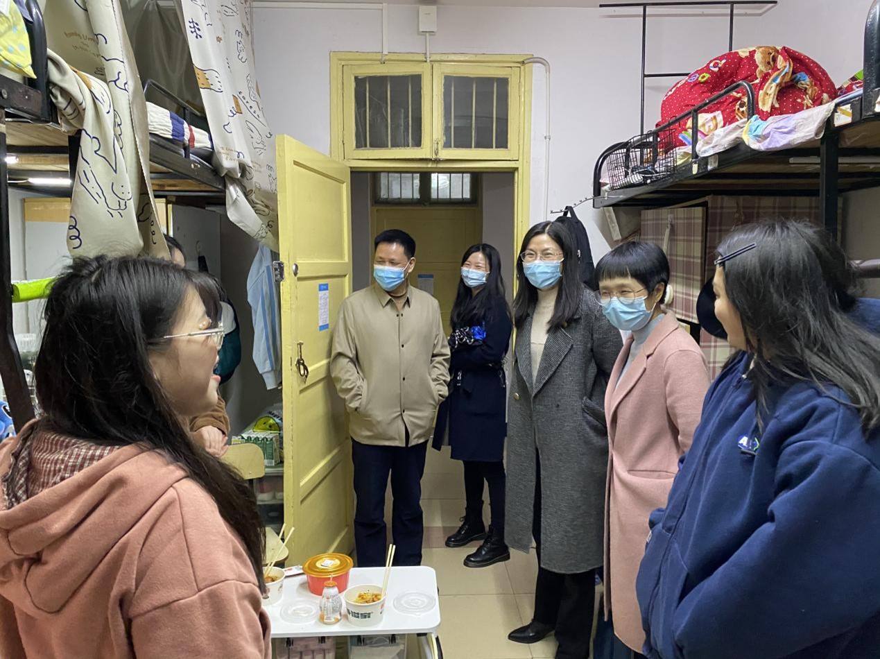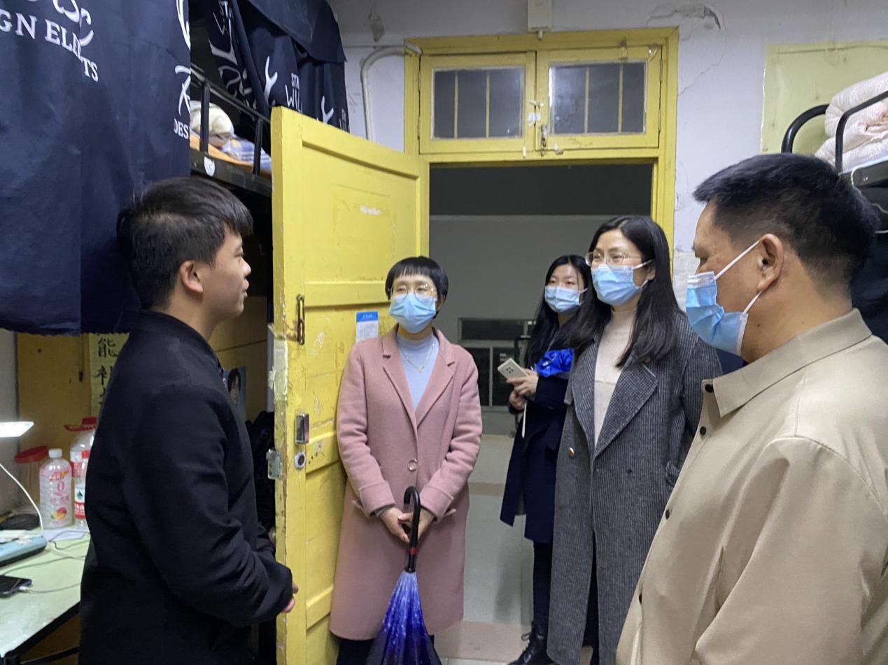 4月16日晚,公司党委委员、副董事长蒋蓉,学工部老师颜雅琴,公司党委副书记欧阳范剑,学工办主任唐科与值班辅导员刘晨晨走访员工公寓,为疫情常态化生活中的同学们送去关怀与温暖。