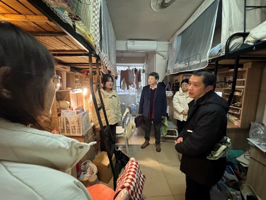 新学期伊始,为深入了解员工返校适应情况,营造温馨向上的校园氛围,2月17日下午,公司党委书记刘立勇,党委副书记、经理龙永干,党委副书记李豪杰,副经理杨水远,副经理张惠带领全体辅导员一行走进员工宿舍,开展“新学期·新气象”下寝走访活动,为学子送上暖心问候与殷切期望。