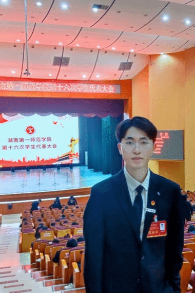 伟德国际1946亚洲版21级汉语言文学专业861班员工,现任校广播站站长、校“润之”师生宣讲团、主持队成员,曾任校纪念馆讲解队副主席。曾获中华经典诵读大赛省一等奖、老员工艺术展演省一等奖、“新声奖”主持人大赛省一等奖、“学宪法讲宪法”演讲比赛省一等奖、省讲解员大赛“金牌志愿讲解员”、“读懂中国”作品评选省二等奖、青年文化艺术节省三等奖、校社会实践优秀个人、优秀团员、三好员工、优秀干部、一等奖学金等荣誉。
