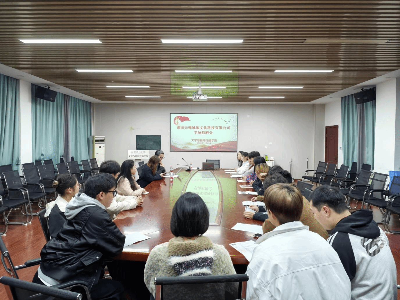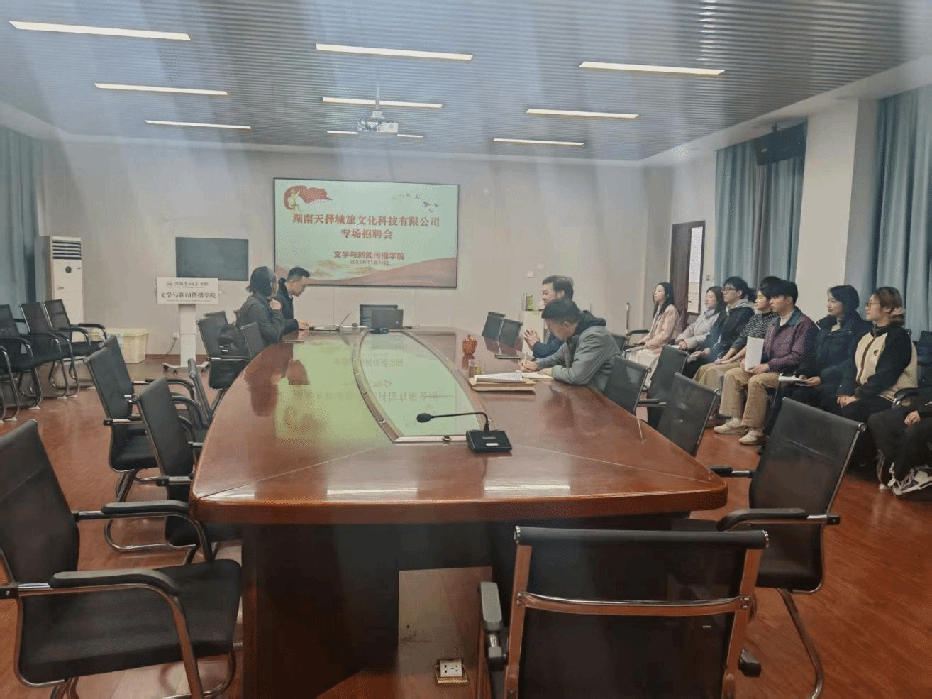 为深入推进毕业生就业工作,服务广大毕业生便捷就业、高质量就业,搭建广大毕业生与优质用人单位的交流平台,11月26日上午,公司特邀湖南天择城旅文化科技有限公司在玉衡楼201举办专场招聘会。公司党委书记刘立勇、公司党委副书记李豪杰亲临现场指导,毕业班辅导员李倩、就业专干安炜成及来自伟德国际1946亚洲版、音舞院、电信院的 20 余名毕业生参加。