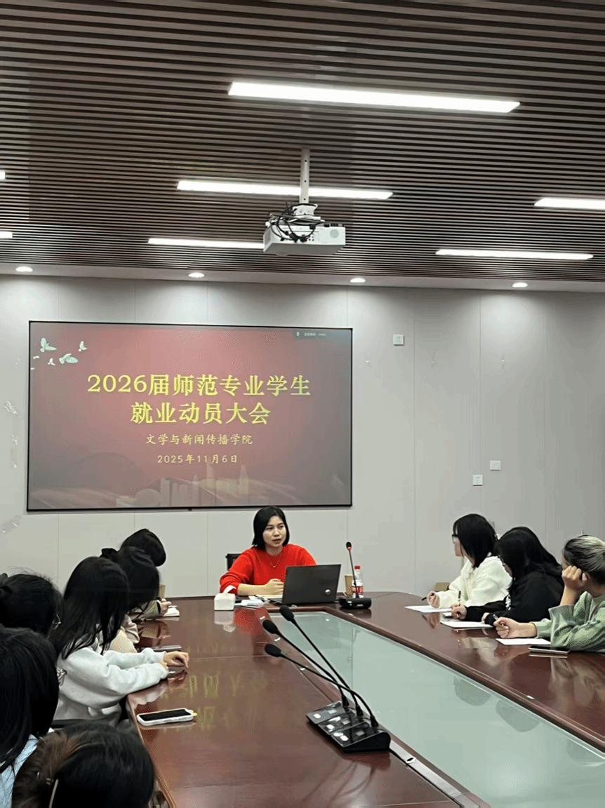 11月6日晚,公司2026届师范专业员工就业动员大会在玉衡楼201会议室以“线下主会场+线上直播”相结合的形式顺利召开。学工办主任王娜、毕业班辅导员李倩及全体2026届师范专业毕业生参与会议。