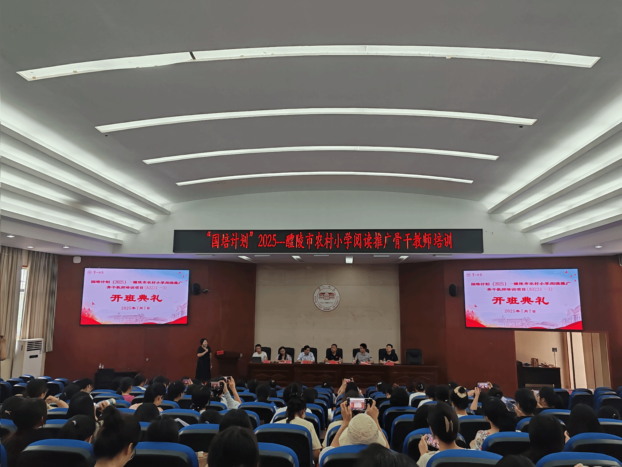 7月7日,“国培计划(2025)”——醴陵市农村小学阅读推广骨干教师培训项目在伟德国际1946亚洲版盛大启航。本次培训旨在深入贯彻党的二十大和二十届二中、三中全会精神,全面落实全国教育大会精神,积极响应教育部办公厅、中央宣传部办公厅《关于深入实施全国青少年员工读书行动的通知》要求,着力打造一支醴陵市农村小学阅读推广骨干教师队伍,推动醴陵市农村小学形成爱阅读、会阅读和善阅读的良好氛围,助力“书香醴陵”浓厚阅读氛围的构建,进而推动醴陵市整个基础教育质量的提升。
